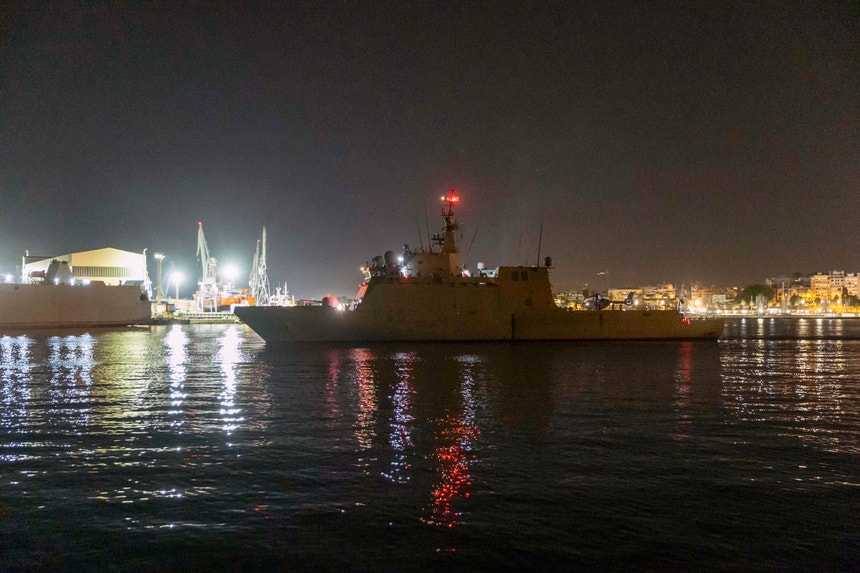 A fragata vai enviar um alerta aos barcos envolvidos na missão que irá parar quando chegarem a uma distância entre 100 a 120 milhas náuticas da costa da Faixa de Gaza.