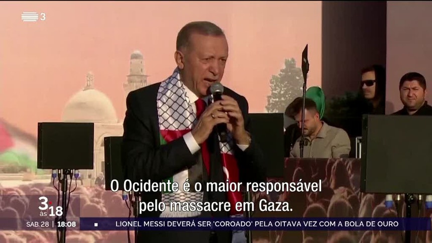 - O presidente da Turquia acusou o Ocidente de ser “o principal culpado” dos massacres na Faixa de Gaza. Durante uma manifestação de apoio à Palestina, em Istambul, Recep Tayyip Erdogan reiterou que o Hamas “não é uma organização terrorista” e acusou Israel de ser “o ocupante”;