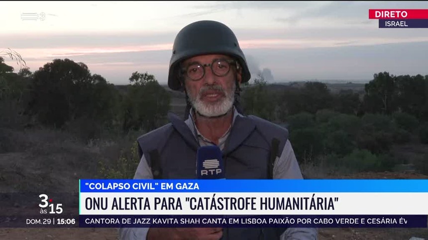 - Um porta-voz diz que as forças de Israel estão a passar à próxima fase da guerra contra o Hamas. Os palestinianos devem dirigir-se para sul onde estão, diz, os esforços de ajuda humanitária vão ser reforçados este domingo.