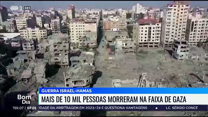 A guerra entre Israel e o Hamas, que cumpre hoje o 31º dia e que continua a ameaçar alastrar-se a toda a região do Médio Oriente, fez até agora na Faixa de Gaza mais de 10.000 mortos, anunciou o Ministério da Saúde palestiniano, controlado pelo movimento islamita Hamas.
