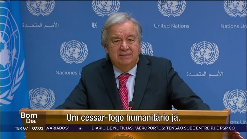 - Falando em "pesadelo", "uma crise da humanidade" onde "ninguém está seguro", Guterres afirmou-se "profundamente preocupado" com as "claras violações do direito humanitário internacional" no terreno;