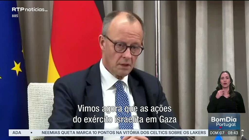 O chanceler alemão reconhece que as ações do exército israelita em Gaza colocaram a Alemanha num dilema. Frederich Merz reafirma, no entanto, que "Israel tem o direito de se defender".