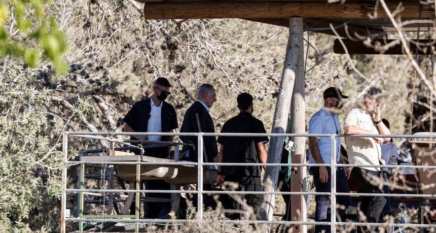 À chegada, um pequeno grupo de manifestantes juntou-se à entrada principal e obrigou aos veículos que levavam a comitiva do governo israelita a entrar por outro acesso, enquanto gritavam palavras como "corrupto", "assassino" ou "fomos abandonados".