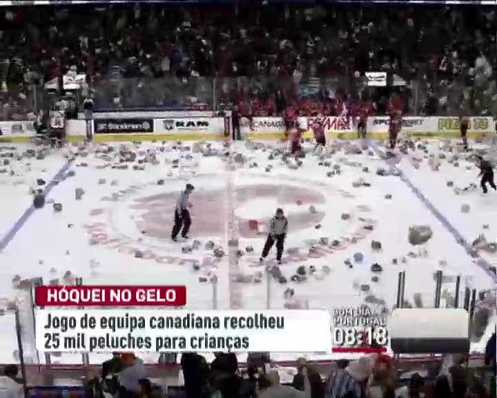 Tradição repetiu-se num jogo de hóquei no gelo no Canadá