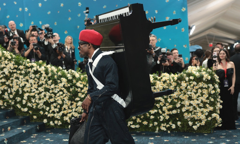 Piano acoplado às costas como assessório de moda