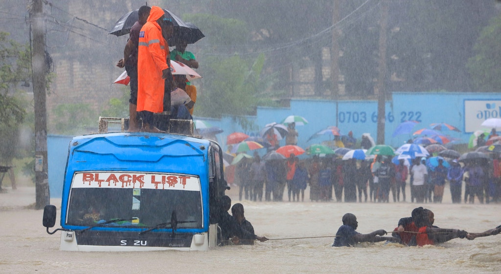 Um autocarro de passageiros ficou preso nas cheias em Mombaça. As pessoas tentam sair agarradas a cordas enquanto outras esperam no tejadilho. As chuvas intensas que atingiram o Quénia, nas últimas semanas, já fizeram deslocar quase 36 mil pessoas e pelo menos 17 morreram. Há ainda notícia da perda de mais de mil animais e de cerca de 221 hectares de terras agrícolas alagados.