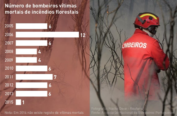 De 2005 a 2015, 58 bombeiros perderam a vida. Os anos de 2006 e 2011 foram os piores: morreram 19 bombeiros; 12 e sete, respetivamente.