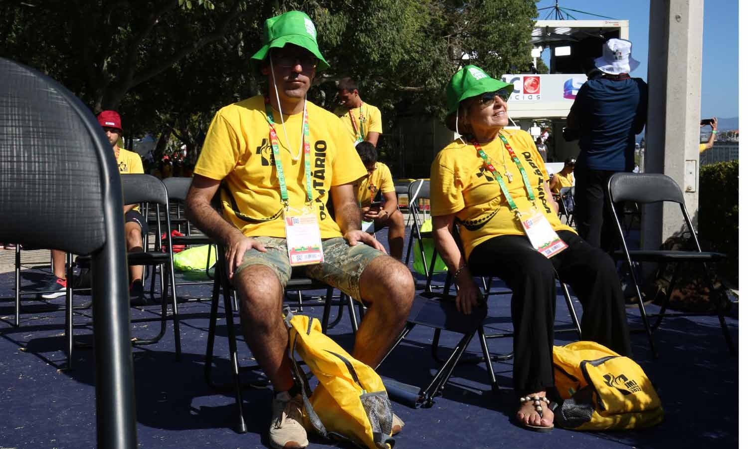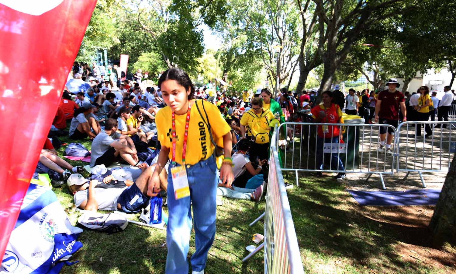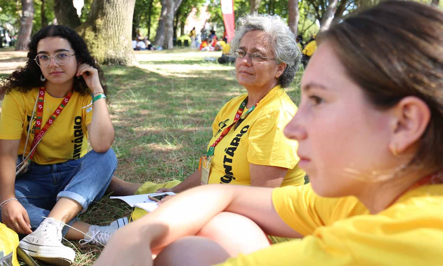 Sentados em grupo, a descansar à sombra ou a conversar, pessoas de todas as idades aguardavam o início das celebrações. Apesar de ser mundialmente famoso por reunir jovens de todo o mundo, este evento atrai também adultos mais velhos. É o caso de Ana Carla que, aos 59 anos, decidiu juntar-se aos mais novos e ser voluntária nesta jornada.