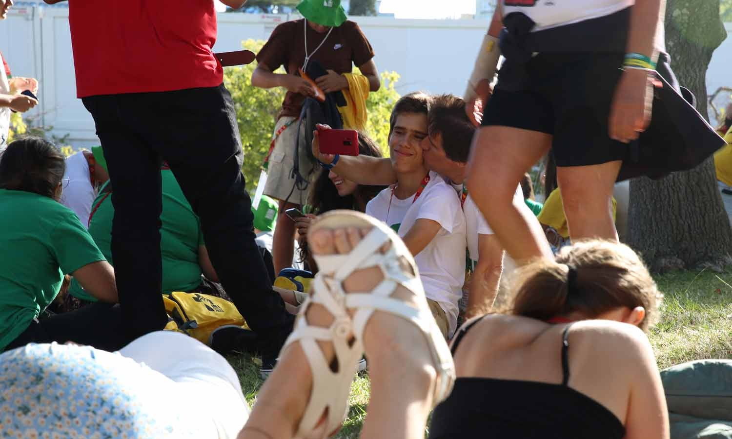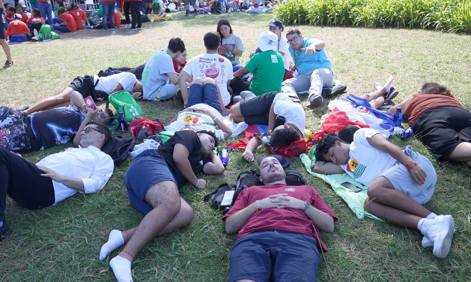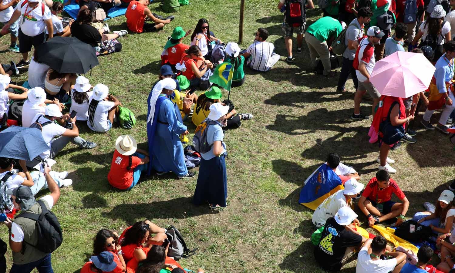 Sentados em grupo, a descansar à sombra ou a conversar, pessoas de todas as idades aguardavam o início das celebrações. Apesar de ser mundialmente famoso por reunir jovens de todo o mundo, este evento atrai também adultos mais velhos. É o caso de Ana Carla que, aos 59 anos, decidiu juntar-se aos mais novos e ser voluntária nesta jornada.