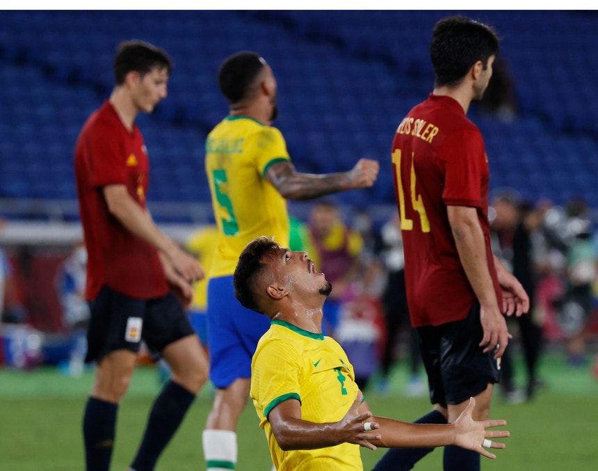 Numa partida que teve o português Artur Soares Dias como quarto árbitro, Matheus Cunha colocou os brasileiros na frente, aos 45+2 minutos, Mikel Oyarzabal repôs a igualdade, aos 61, e Malcolm consumar o triunfo dos sul-americanos, aos 108.