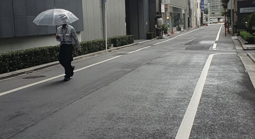 Olho pela janela. A cor de Tóquio diz-me que vai chover.