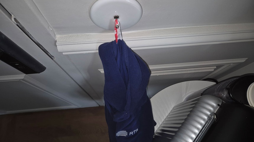 Não o tinha sequer torcido. Tem a etiqueta? Tem. Enfio-a no pinxavelho do interruptor. Dou uma volta armada em nó.