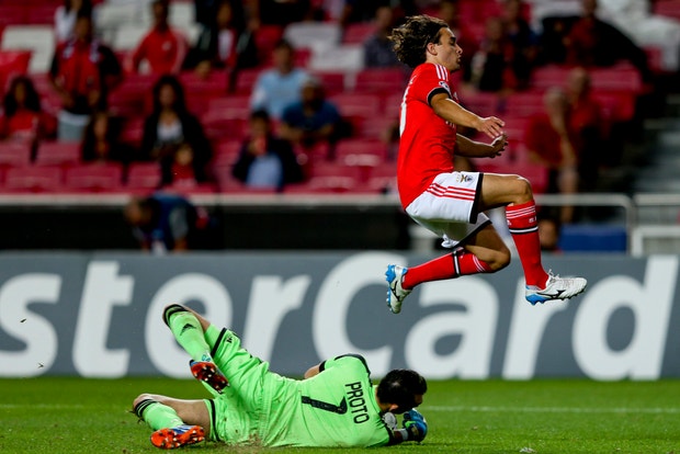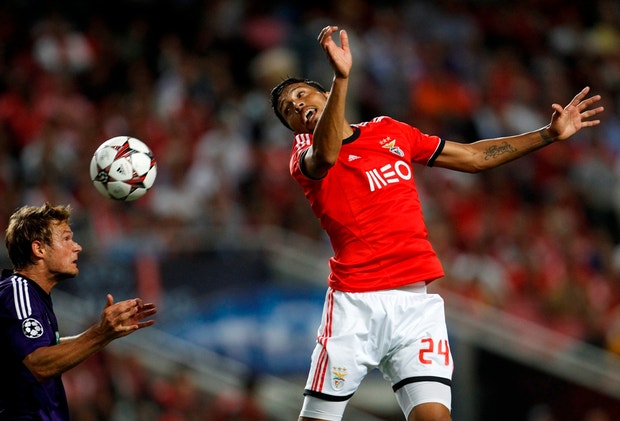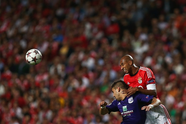 Um "duelo" entre Gillet e Garay durante o Benfica-Anderlecht para a Champions reuters