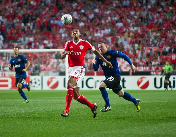 Luisão, com Rooney, do ManUnited à perna, na Luz antena1