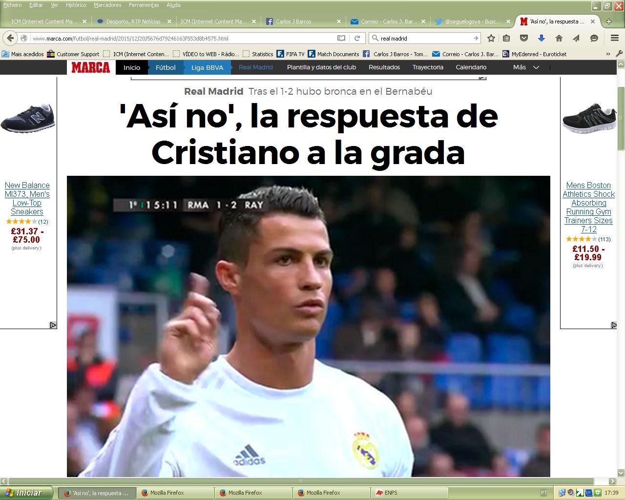 Com este resultado, para o qual o internacional português Cristiano Ronaldo contribuiu com dois golos ele que foi assobiado pelos adeptos da sua equipa, 'contra' três do francês Karim Benzema e quatro do galês Gareth Bale, o Real Madrid passou a contar 33 pontos, colocando-se, à condição, a dois dos líderes FC Barcelona e Atlético de Madrid.