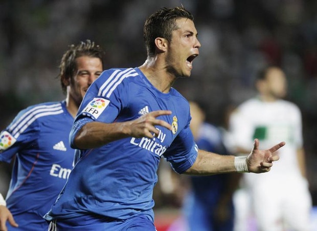 Cristiano Ronaldo deu esta quarta-feira os três pontos ao Real Madrid, que venceu por 2-1 o Elche, último classificado da Liga espanhola de futebol, depois de um penálti duvidoso assinalado nos descontos.
