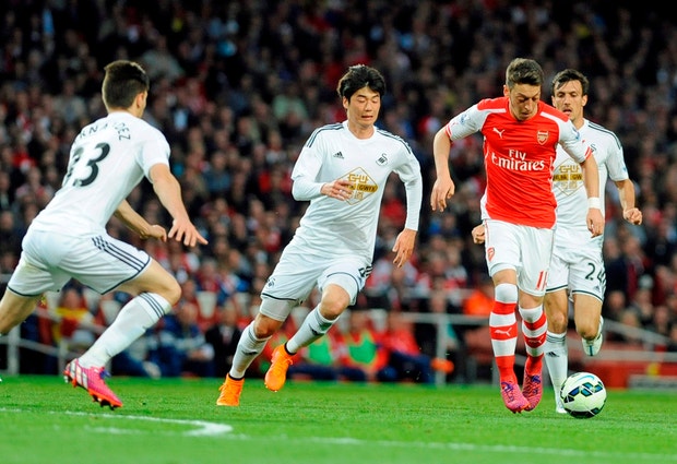 O Arsenal foi surpreendido, em casa, frente ao Swansea, ao perder por 1-0, em jogo da 36ª jornada da Premier League.