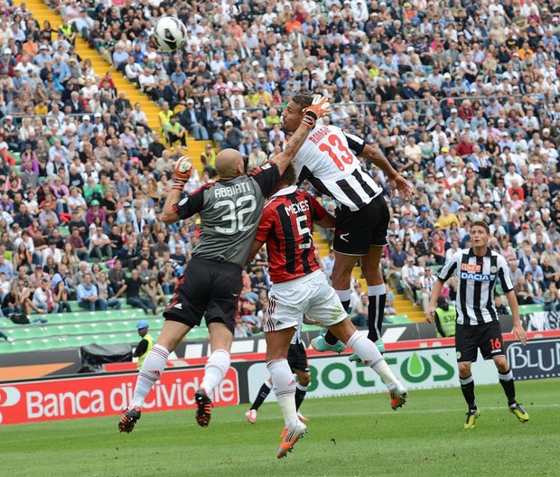 Udine, aos 40 minutos, mas o Milan repôs a igualdade por El Shaarawy, aos 54. Di Natale fixou o resultado, aos 68, na conversão de uma grande penalidade, da qual resultou ainda a expulsão de Zapata.