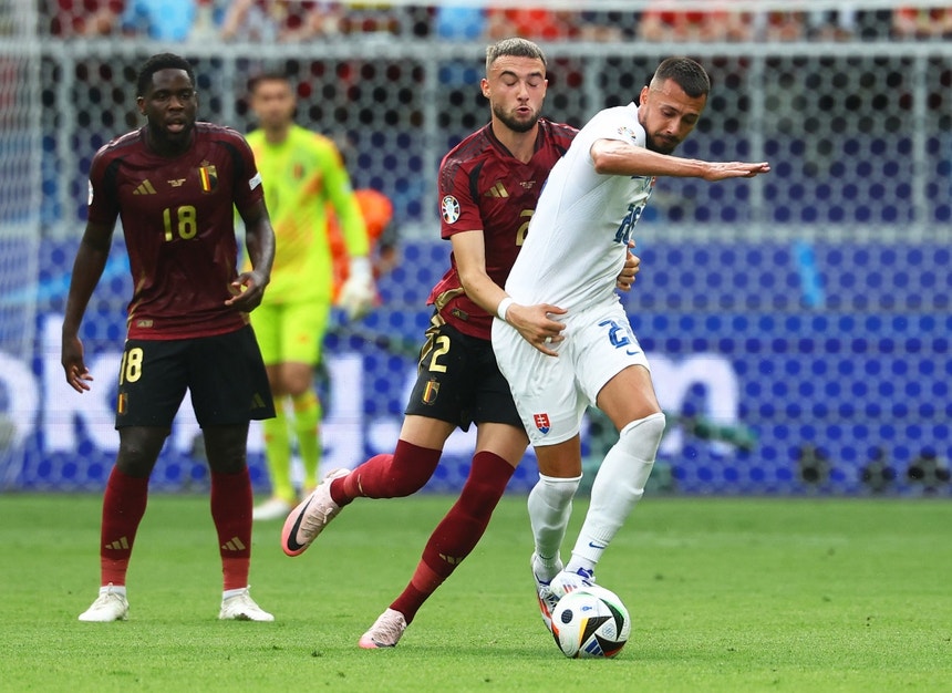 Zeno Debast no jogo contra a Eslováquia no Euro2024 Foto: Kai Pfaffenbach - Reuters