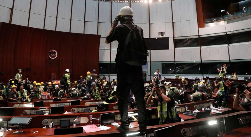Um grupo de centenas de manifestantes, que o Governo da cidade diz terem agido com "extrema violência", entrara hoje na sede do Conselho Legislativo de Hong Kong, depois de derrubar barreiras e quebrar janelas, tendo hasteado uma bandeira da era colonial britânica, perante a impotência das forças policiais.