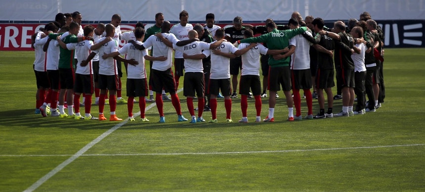 Nos 15 minutos abertos à imprensa os jogadores fizeram corrida e os habituais exercícios de aquecimento. A Seleção Nacional fez um minuto de silêncio antes do treino. Um apelo à reflexão sobre a crise dos refugiados na Europa.