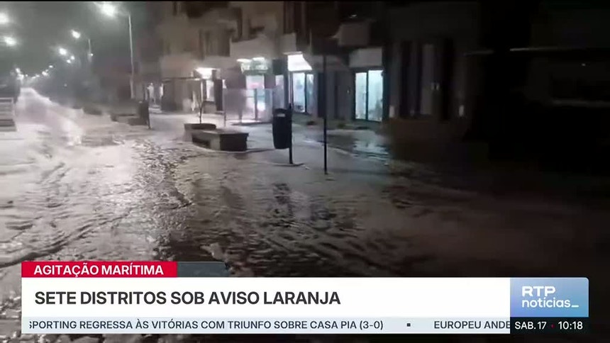 Há sete distritos de Portugal continental sob aviso laranja, este sábado, devido à previsão de agitação marítima. Segundo o Instituto Português do Mar e da Atmosfera, esse aviso deve vigorar até às 12h00 nos distritos do Porto, Viana do Castelo, Lisboa, Leiria, Aveiro, Coimbra e Braga.
