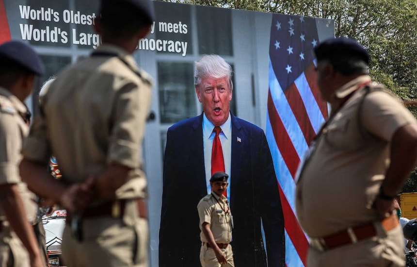 O Presidente norte-americano foi acompanhado no seu discurso pelo primeiro-ministro indiano, Narendra Modi, durante o evento chamado "Namaste Trump" ("Saudações, Trump"), uma das maiores receções oferecidas na Índia a um presidente estrangeiro.