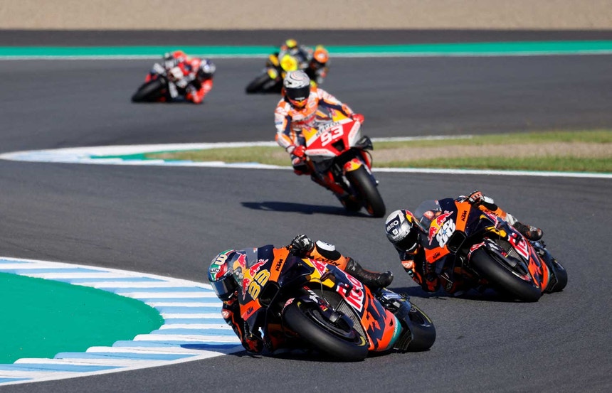 A partir daí, o piloto português de 27 anos manteve um duelo aceso com o espanhol Marc Márquez (Honda), que acabaria por ultrapassar Oliveira a três voltas da bandeirada de xadrez.