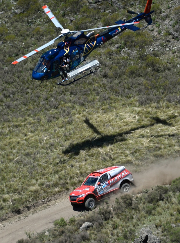 O piloto português Carlos Sousa, vencedor da primeira etapa do Rali Dakar, está a tentar terminar a segunda, depois de o turbo do seu Haval se ter partido ao quilómetro 33 da "especial".