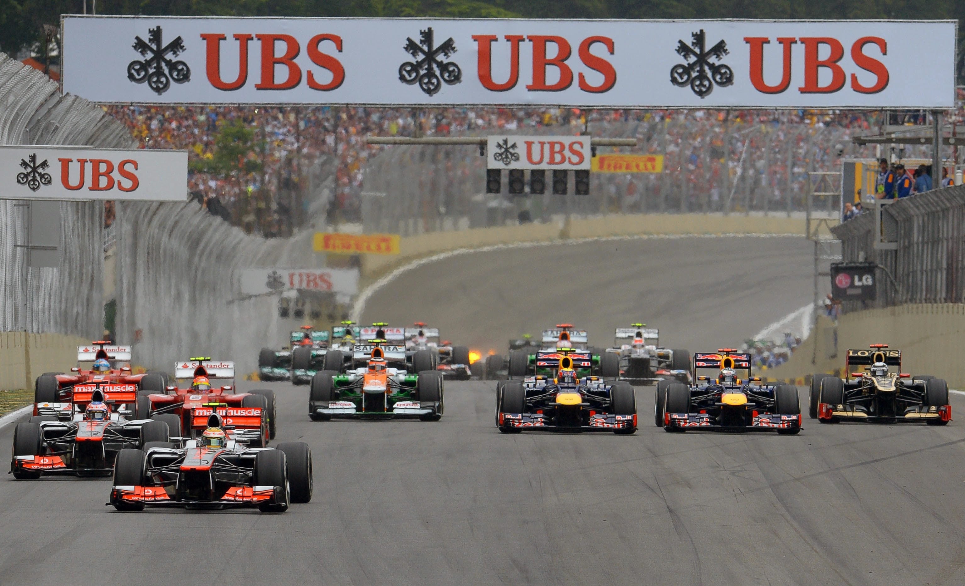 Na largada, os homens da McLaren protegeram a liderança. Logo atrás
