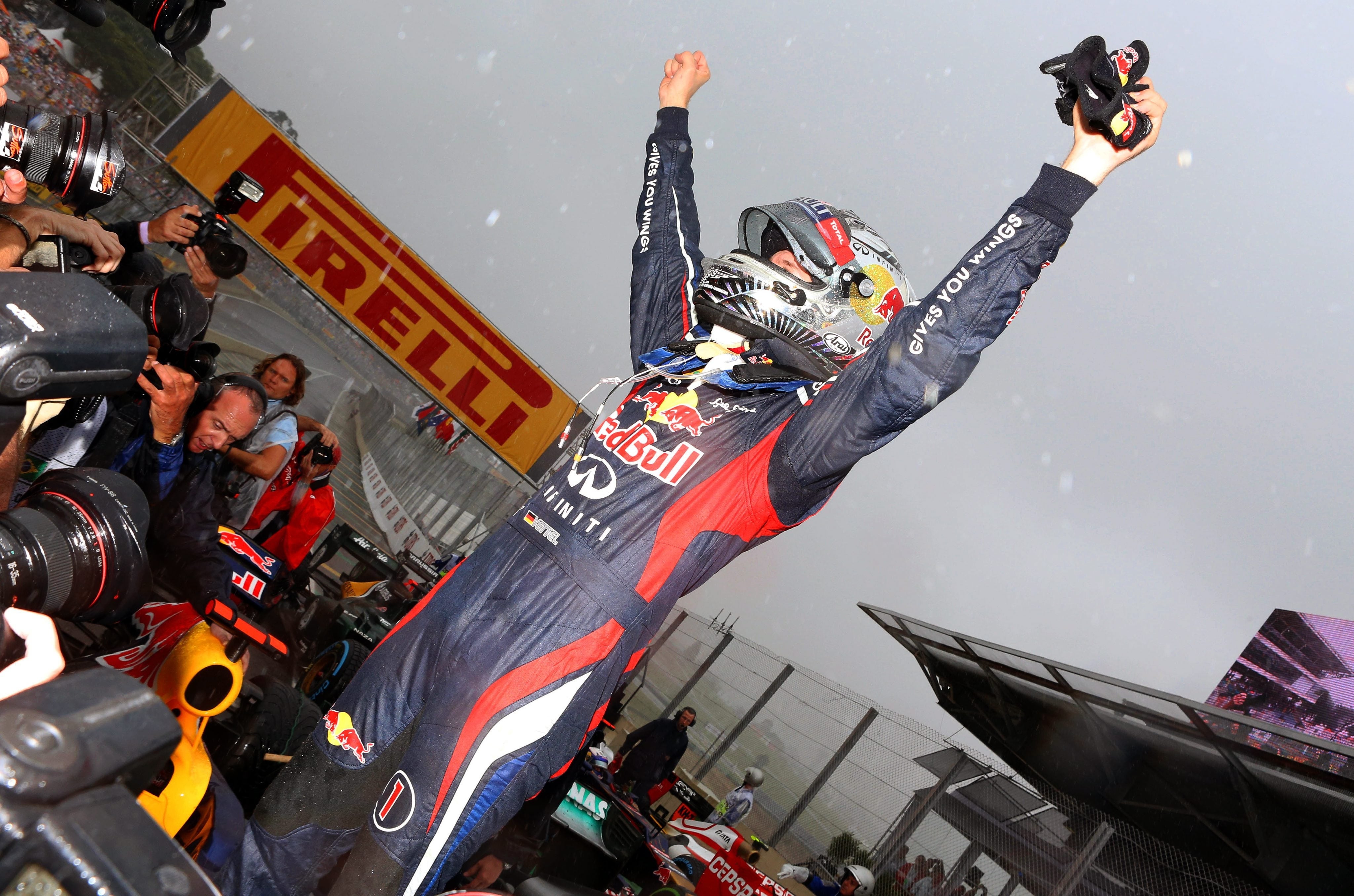 Nesse momento, Vettel sabia que mais nada poderia acontecer. O título estava ganho.