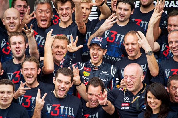 Com 25 anos e 140 dias, Sebastian Vettel tornou-se no mais jovem tricampeão mundial de Fórmula 1 e é também o terceiro piloto a conquistar três títulos consecutivos.
