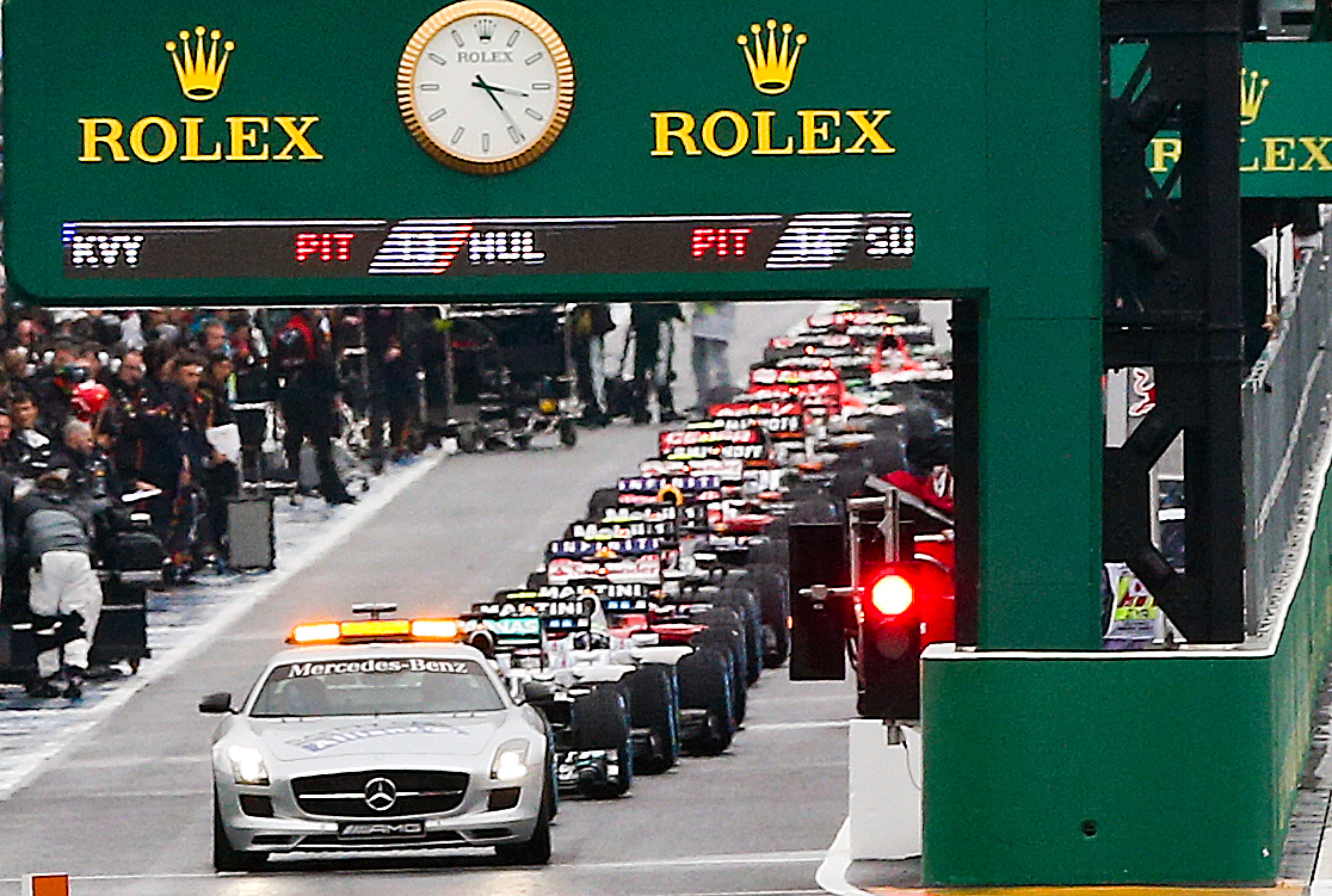 o carro de segurança por fim saiu de pista, Rosberg liderou com