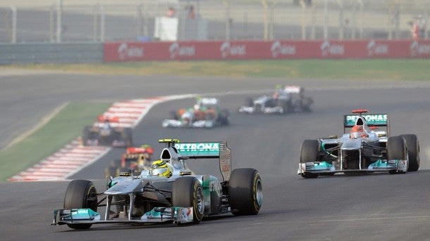 Michael Schumacher e Nico Rosberg fizeram corridas muito próximas um do outro. Na primeira parte foi Rosberg que liderou mas as voltas de Schumacher até ao último pit stop permitiram-lhe passar para a frente do companheiro.