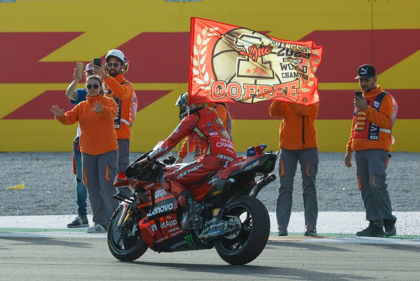O piloto italiano Francesco Bagnaia (Ducati) venceu hoje o Grande Prémio da Comunidade Valenciana e tornou-se no primeiro piloto a revalidar o título de campeão mundial de MotoGP desde que o australiano Mick Doohan o conseguiu, em 1998.