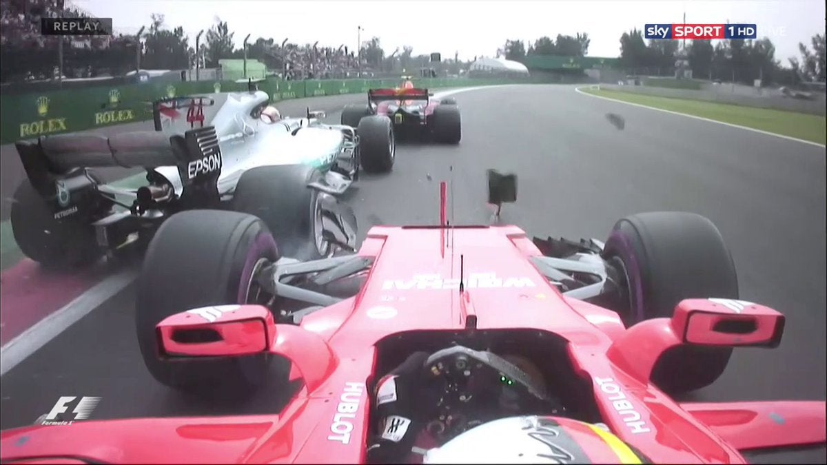 Veja aqui o incidente, com Hamilton a aproveitar o espaço deixado por Vettel por fora, a meter o carro e a passar mas na saída da curva o toque.