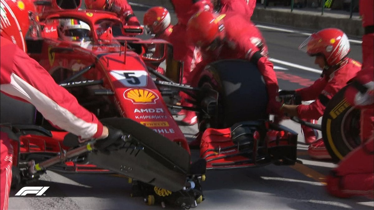 À medida que Vettel ia atrasando o seu pitstop, maiores as chances de terminar a corrida com o composto mais rápido e recente que Hamilton, o que lhe permitiria o assalto à posição da frente. Mas a Ferrari atrasou em demasia o momento certo de entrada. Pensou em atacar a liderança mas perdeu até ao limite o tempo necessário para voltar a sair para a pista à frente de Valtteri Bottas.