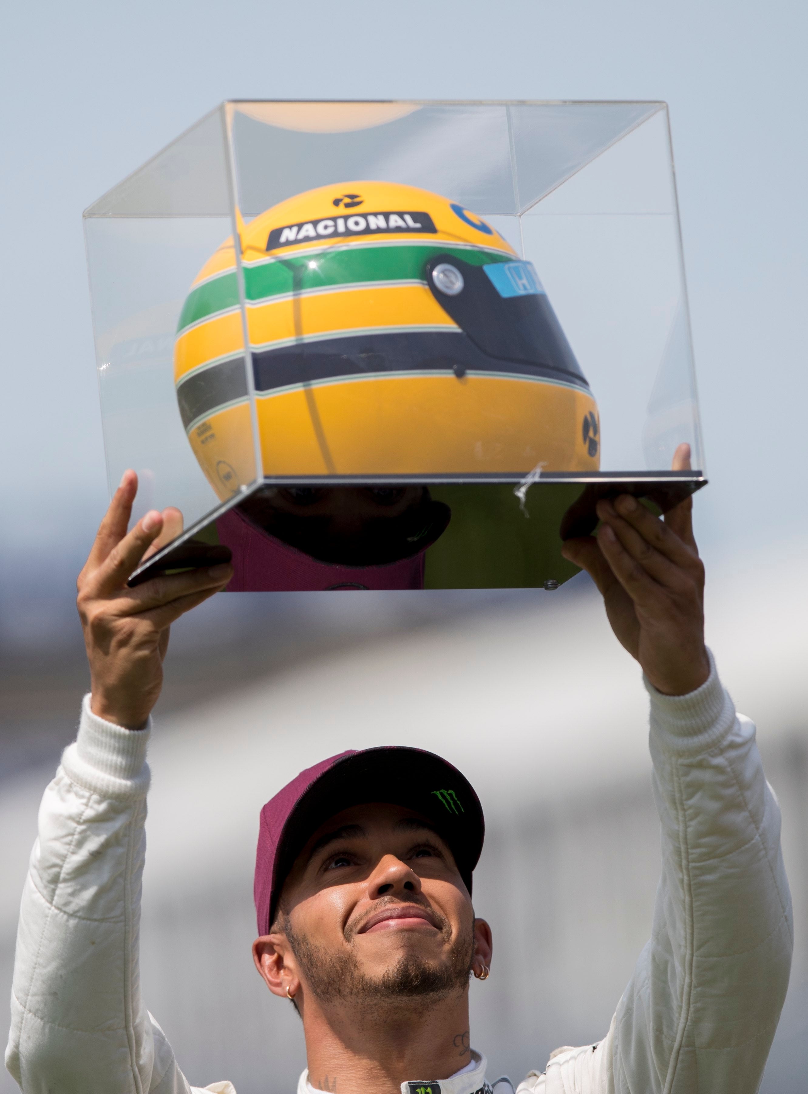 Terminada a qualificação, Lewis foi presenteado pela família Senna, pelo feito das suas 65 poles. Um capacete original usado por Ayrton em 1987, nos tempos da Lotus.