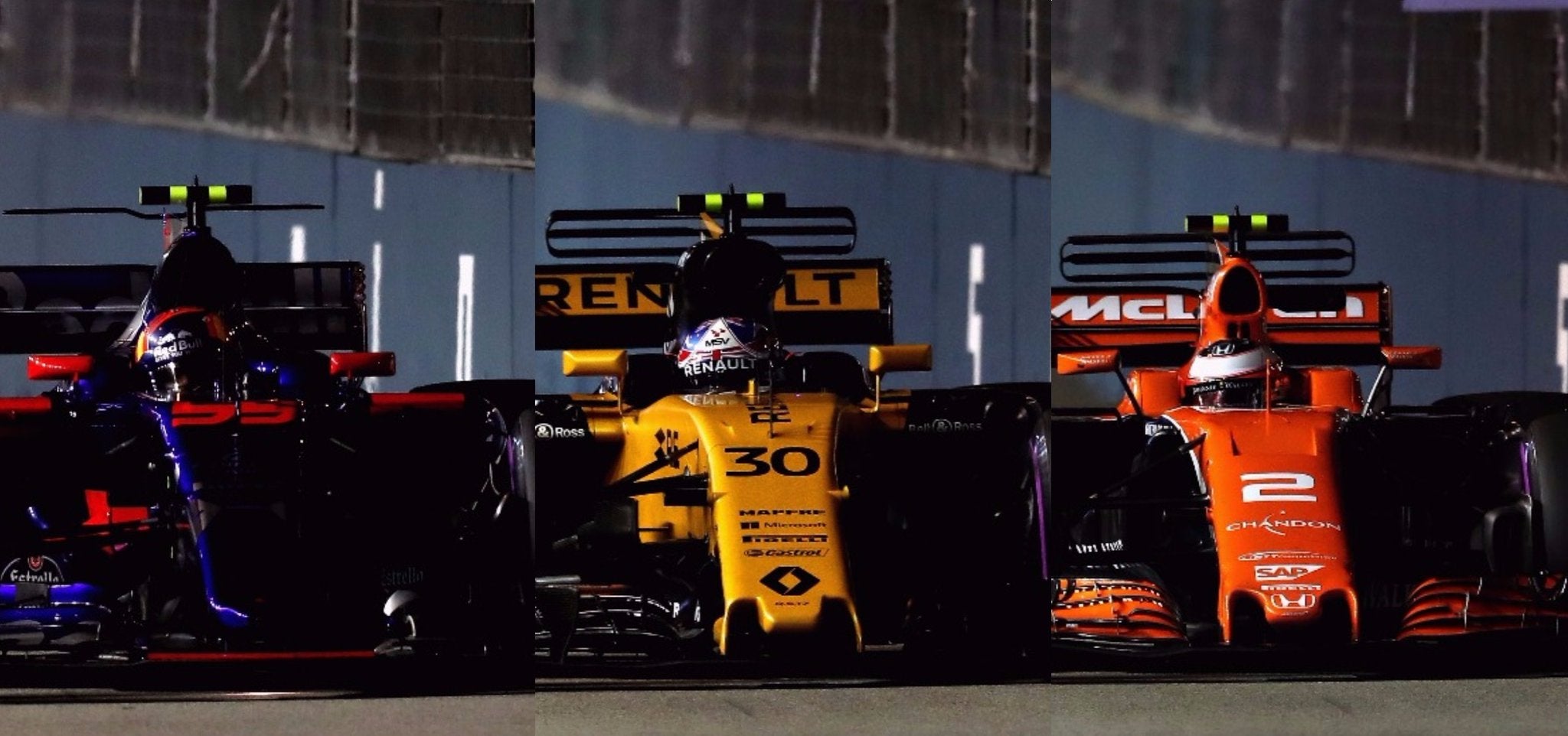 A qualificação tinha deixado claro que Ferrari e Red Bull eram mais fortes na noite de Singapura. Quem apostasse que na 2ª curca do GP, Hamilton já estava no comando e que os 3 primeiros na Grelha batiam entre si, seria considerado louco.
