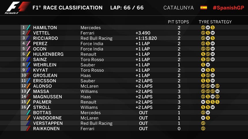 * Foi a 2ª vitória de Hamilton em Montmelo. Venceu também em 2014.