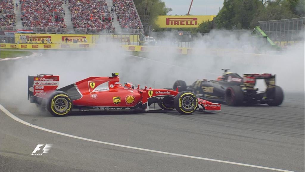 Atrás dos dois homens da Mercedes, Raikkonen estava em condições de chegar a mais um pódio. Só que após o seu 1º pit stop, ele fez um pião. O finlandês foi surpreendido tal e qual o ano passado por um disparo não previsto do sistema híbrido do carro que inesperadamente levou a que o carro desse uma guinada.
