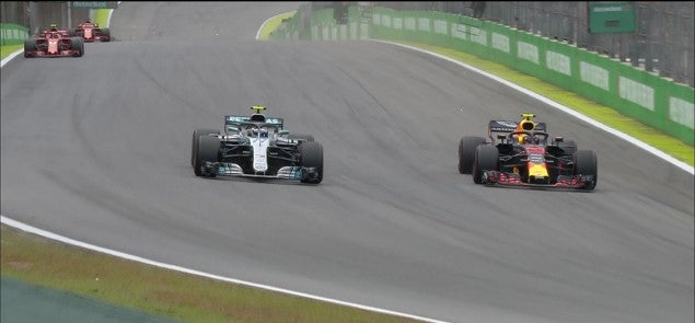 Verstappen perseguia o objetivo de vencer a sua segunda corrida da época, quando a discutir posição com o Force India, uma volta atrasado, acabou por tocar o seu carro com o de Ocon, nos S de Senna. Ainda tentou recuperar a posição mas já não foi suficiente fechando apenas na segunda posição atrás do recentemente coroado Penta Campeão do Mundo.