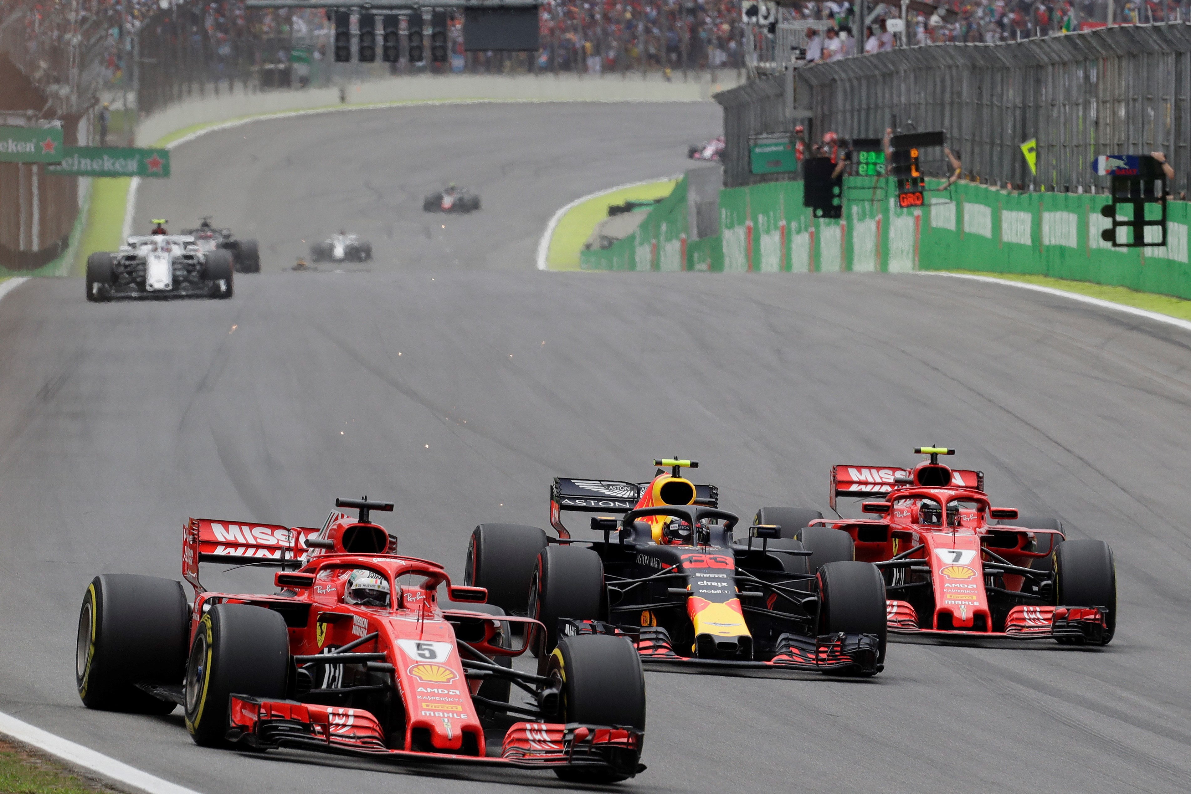 A Ferrari deixou na pista de Interlagos, de novo, as dificuldades sentidas desde o GP da Bélgica e que agonizaram a performance da escuderia italiana na segunda metade do mundial. Raikkonen conseguiu no braço vencer o outro Red Bull de Daniel Ricciardo, também ele a fazer uma bela corrida, mas o certo é que nem Vettel nem Raikkonen se conseguiram bater com os dois homens da frente.