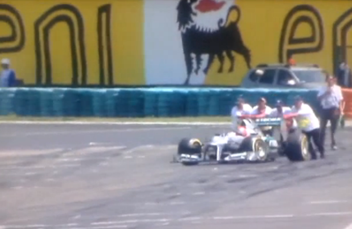 mas quando voltou ficou preso atrás do Williams de Bruno Senna sem