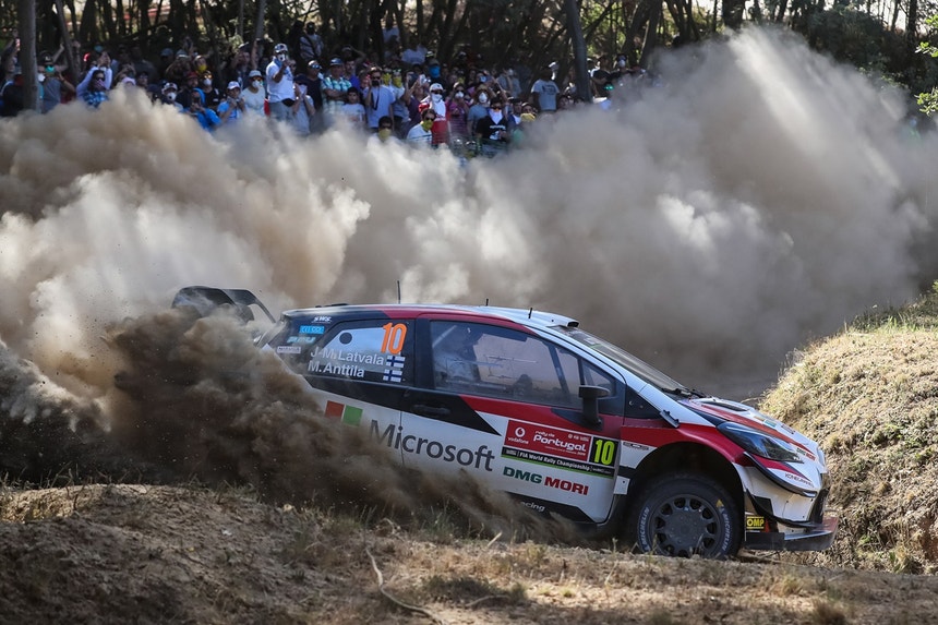 O piloto estónio Ott Tanak (Toyota Yaris) terminou sábado o segundo dia do Rali de Portugal na frente da classificação apesar de ter feito um pião na última especial do dia, em Amarante 2.