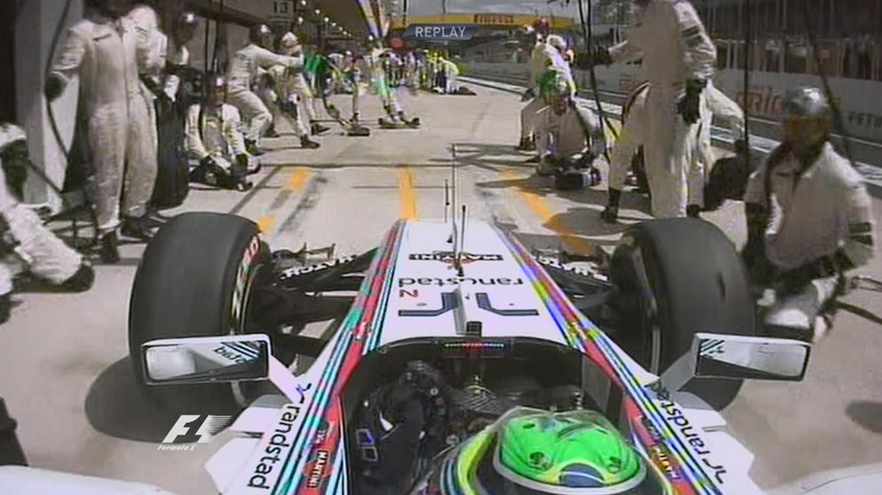 teve 2 pit stops absolutamente desastrosos. No 1º pit stop, escedeu a