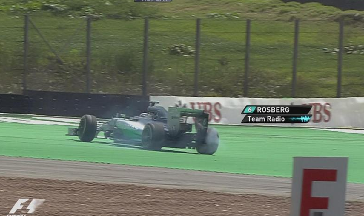 da pista. Isso impediu-o de sair das boxes na frente de Rosberg e a