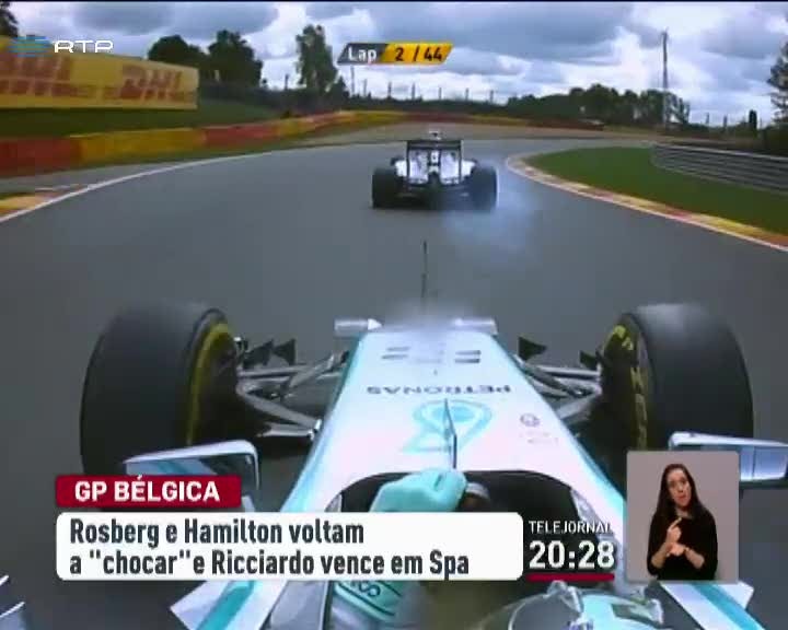 O Grande Prémio de Formula 1 na Bélgica teve mais um episódio da relação tensa entre os pilotos da Mercedes. Depois de ser superado na largada, Nico Rosberg tentou passar para a frente e acabou por tocar no pneu traseiro do seu companheiro de equipa, Lewis Hamilton. O piloto inglês foi forçado a ir às boxes, o que fez com que ficasse de fora da luta pelos lugares da frente, acabando por desistir a quatro voltas do fim. O incidente causou mau-estar na equipa da Mercedes. Rosberg terminou a corrida no 2º lugar e foi vaiado na cerimónia do pódio. O vencedor foi o australiano Daniel Ricciardo.