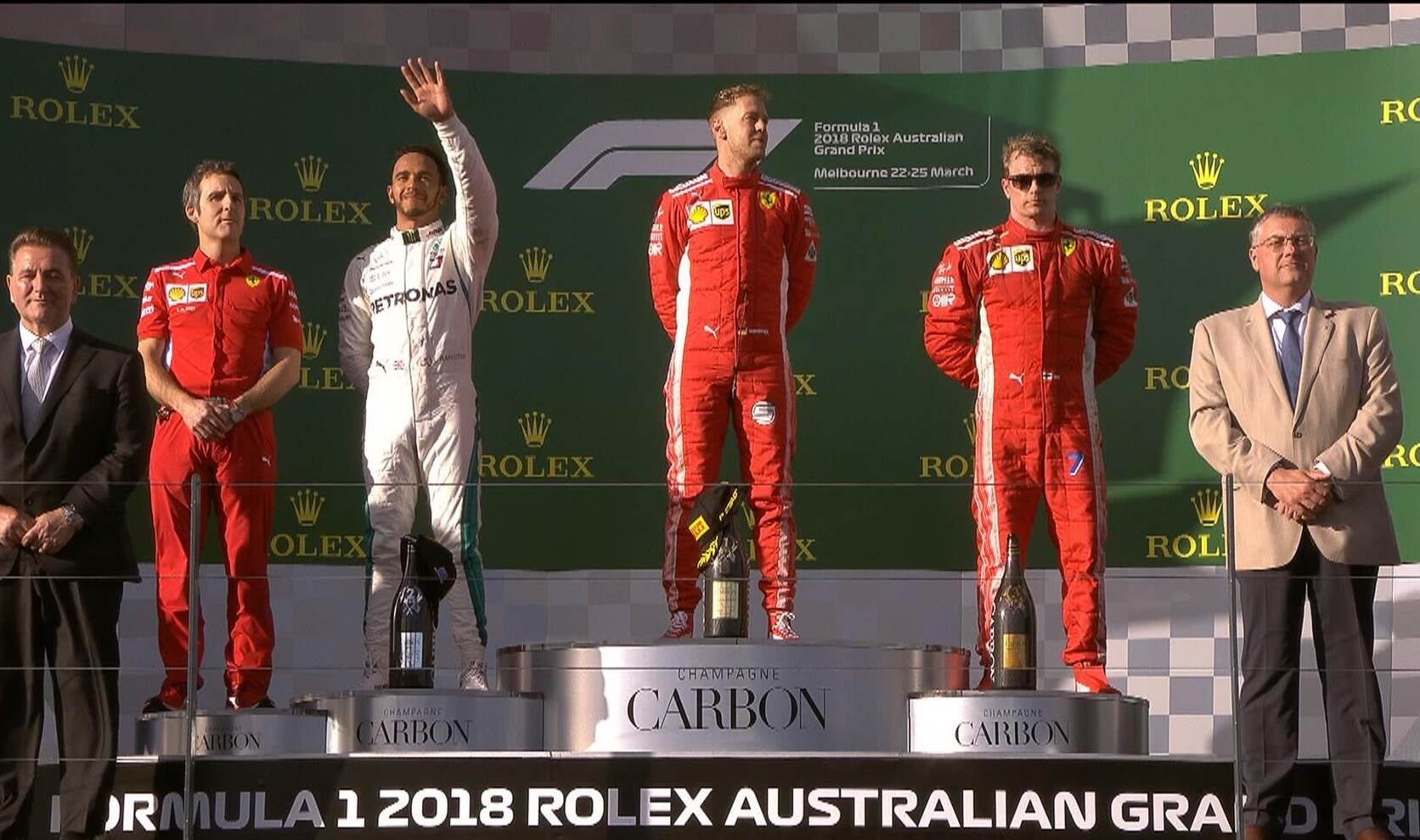 * O pódio do GP da Austrália teve visíveis 9 títulos mundiais. Hamilton 4, Vettel 4, Raikkonen 1. É o 2º pódio com mais títulos de sempre. Melhor só o GP Europa de 2012 com 10 títulos entre o Top 3. Alonso (2), Schumacher (7) e Raikkonen (1).