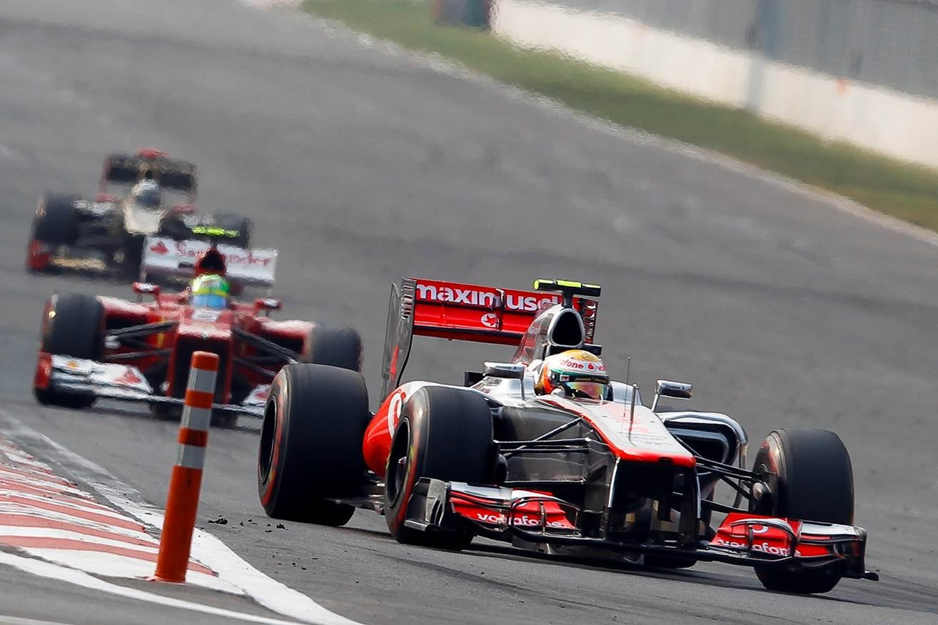 escassos metros de vantagem sobre Perez. A McLaren por pouco interrompia